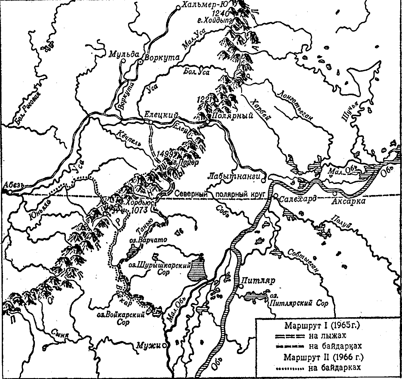 Пайерский-р.Лев.Пайера-р.Танью-оз.Варчаты-р.Войкар-р.Малая Обь)