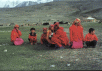 женщина с детьми, собирающая кизяки в пластиковый мешок. Завидев нас, они