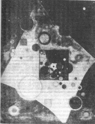 и довольно равномерного распределения.** Невольно вспоминаются старинные хоровые композиции, Моцарт и, наконец, Бетховен. Все эти произведения имеют большее или меньшее сродство с возвышенной, полной покоя и достоинства архитектурой готического собора: равновесие и равномерное распределение отдельных частей являются камертоном и духовной основой подобных конструкций. Подобные произведения принадлежат к переходным формам.В качестве примера новых симфонических композиций, в которых мелодический .элемент находит применение лишь иногда и как одна из подчиненных частей, но получает при этом новую форму, я прилагаю репродукции трех моих картин.