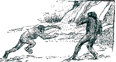 swung down out of the trees and walked upright,
