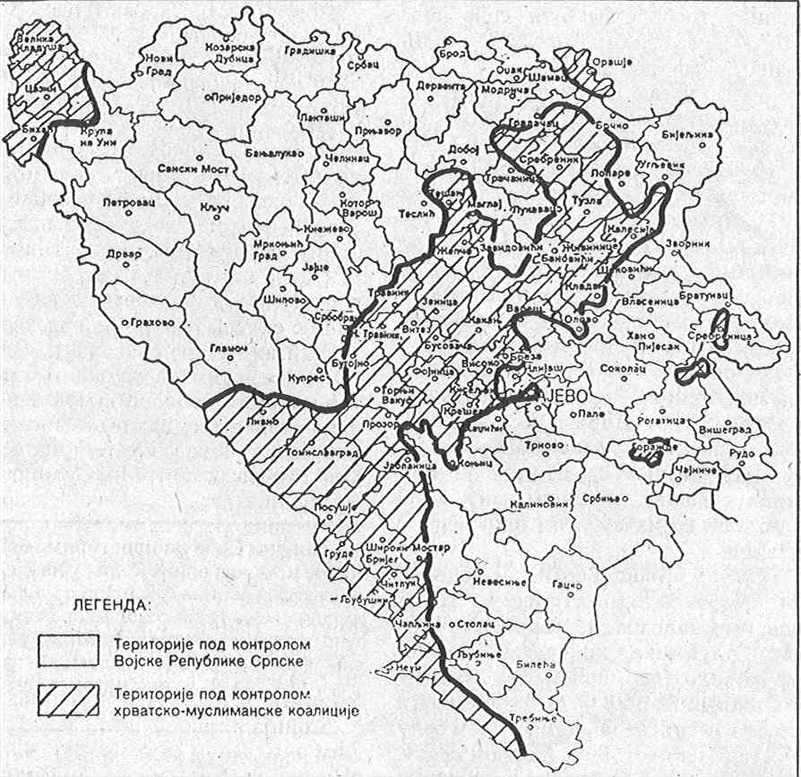 Босния разделилась на две части так: восточная, что воевала на смерть и за