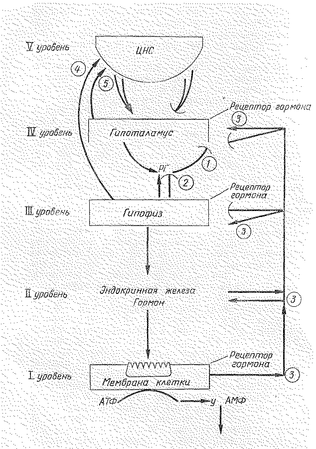 Рис. 2 Принцип механизма обратной связи в эндокринной системе.