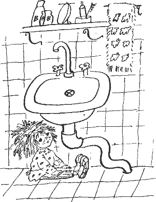 -- В трубе течет, -- важно ответил Кузька. -- Сначала удивилась, когда