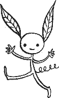человечек. В красной рубахе с поясом, на ногах лапти, нос курносый, а рот до