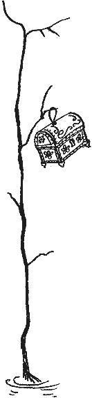Корыто само -- скок на берег, на зеленую травку. Кузька с сундучком в