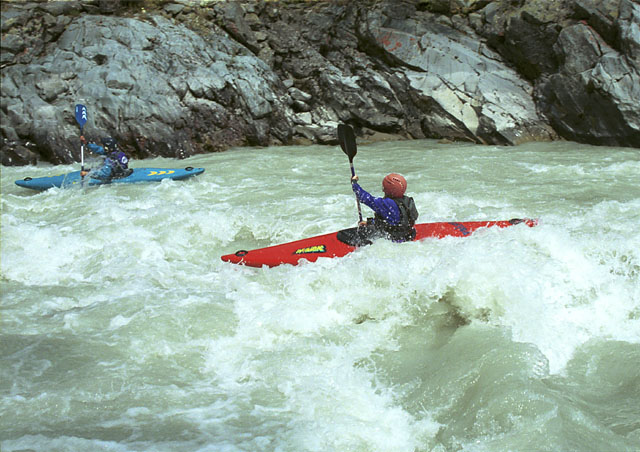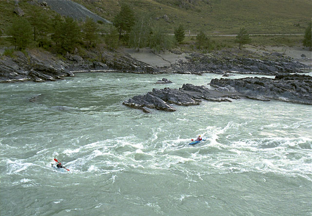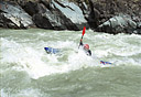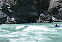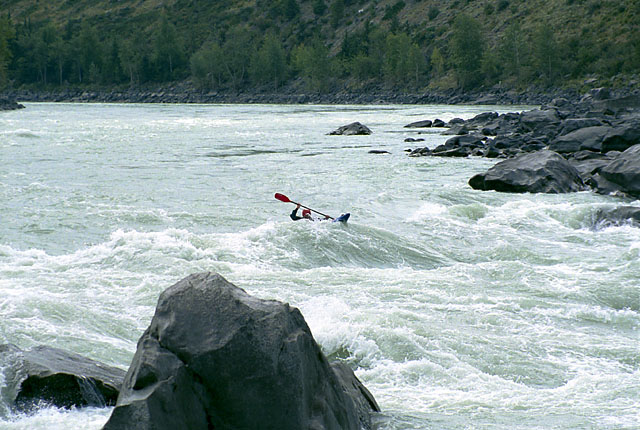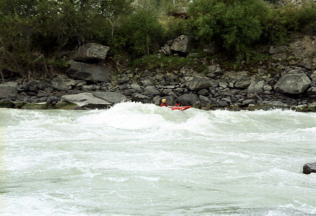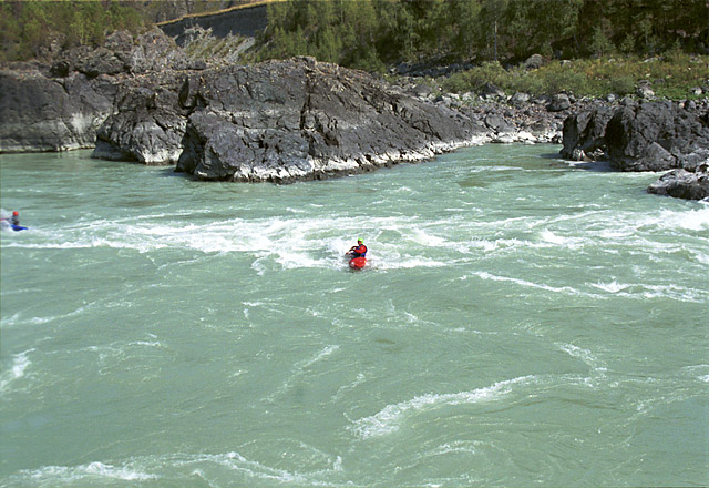 Пор. Щеки 3. Страховка эвакуирует аварийный каяк после порога.