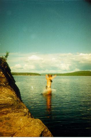 Здесь еще одна дневка. Сергей, наконец, наловил рыбы на одном из мелких озер. Купались на пляже в 500 м от стоянки. Я с матросом залез на гору Копполойва, 454 м. Идти около 2-3 часов сначала по дороге вдоль озера, потом по идущей "наверх" заброшенной лесовозке со свежими медвежьими следами. Наверху на склоне - старая лесосека. Еще чуть выше - безлесная макушка с мачтой. В ясный день с горы просматриваются все окрестные большие озера - практически на 360 градусов и можно проследить почти весь наш путь. Вид великолепный!