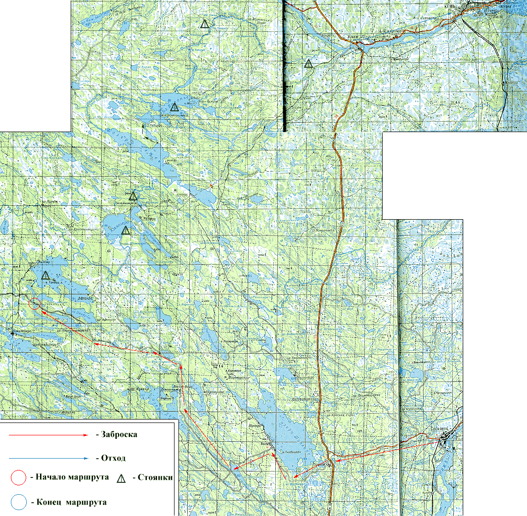 Итак, добрались мы до Сосновца часам к четырем дня. Мы - это группа из тринадцати человек, большую часть которых составлял наш брат МИФИст с вкраплениями Менделеевки, Института Связи и Ветеринарной Академии. Шли мы на шести лодках - 2-х КНБшках, 2-х Тайменях двушках, одном Таймене трешке с двумя гребцами :-( ) и одном Салюте-двушке с двумя гребцами и девушкой в багаже :-( ))) . На одной из КНБ шел опытный байдарочник, ходивший на шестерку. Он же был фактическим руководителем группы и одновременно живой картой, поскольку обычной карты мы ухитрились не взять. Я шел на одном из Тайменей-двушек с моим старым приятелем, блестящим физиком-теоретиком из Дубны, но поначалу совершенно нулевым водником, в качестве матроса. Для меня этот поход оказался явным превышением категорийности - раньше я ходил не выше хилой двушки.