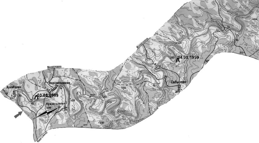 описание прохождение группой маршрута". Кроме этого, ниже деревни Мал. Чураево при несколько большем уровне воды, нежели при совершении данного похода, река идет через лес и в некоторых местах может быть сложно остаться в главном русле.