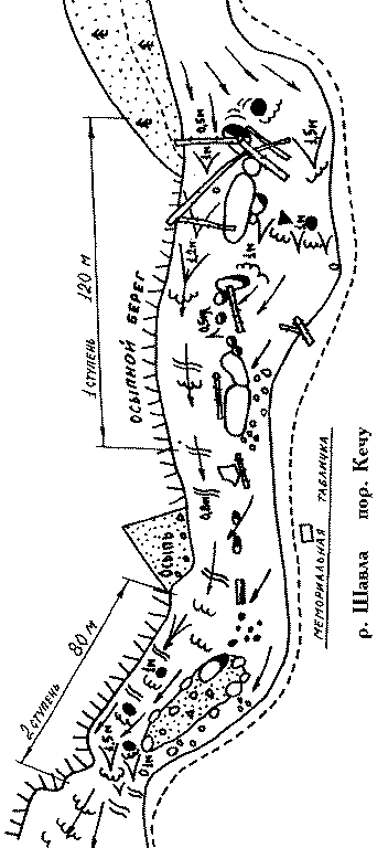 (быстрое  течение, почти  полное  отсутствие уловов). Реальную