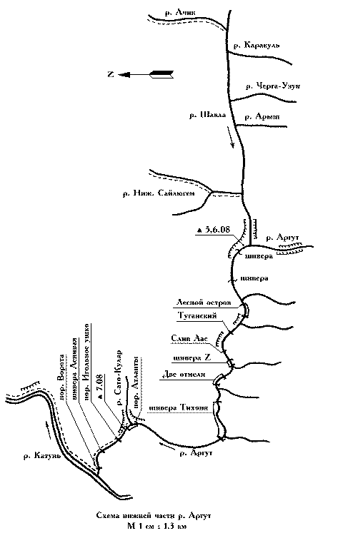 (р. Шавла  -  р. Аргут  -  р. Катунь),