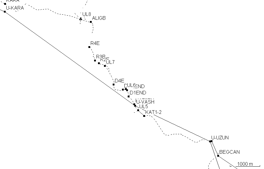 2-км. карт были внесены в GPS Garmin-12 и использованы для ориентирования в походе. Средняя погрешность при внесении точек, вызванная как масштабом карты, так и погрешностями самих карт и GPS составила по 10-км. карте 400 м, а по 2-км. карте 100 м. Трек каньонной части маршрута с указанием точек в масштабе 1 км. прилагается.