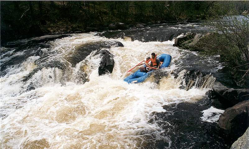 - фот с приличными порогами и затеряными в их пене рафтами.