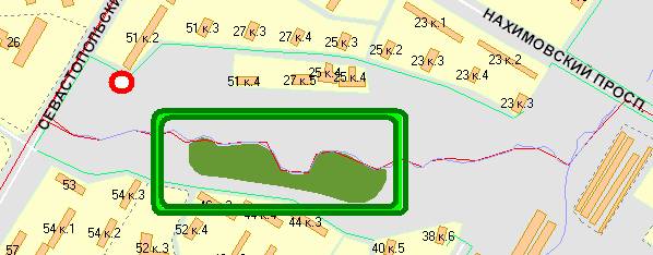Севастопольский и Нахимовский проспекты, затем течет между Нагорной улицей и